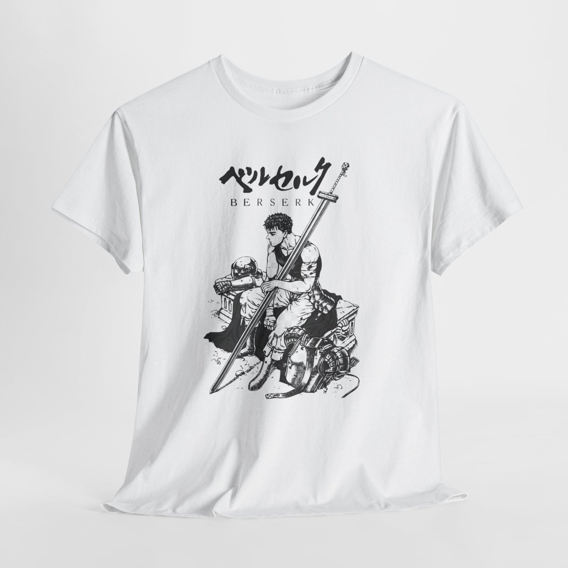 Show your love for Berserk with this graphic t-shirt featuring Guts and his iconic Dragon Slayer sword. The design is simple yet powerful, capturing the essence of the series in black-and-white. Made from soft, comfortable fabric, it’s great for everyday wear or just relaxing. Whether you’re a fan of manga or anime, this shirt is a perfect way to rep your favorite character. Available in a range of sizes.shes.